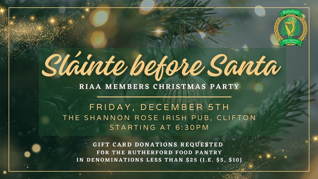 We’re excited to invite you to our annual Members Christmas party, Sláinte Before Santa, on Friday, December 5th starting at 6:30 PM! We’ll be celebrating together at The Shannon Rose in Clifton, and we can’t wait to kick off the season with great company, good cheer, and plenty of festive spirit.